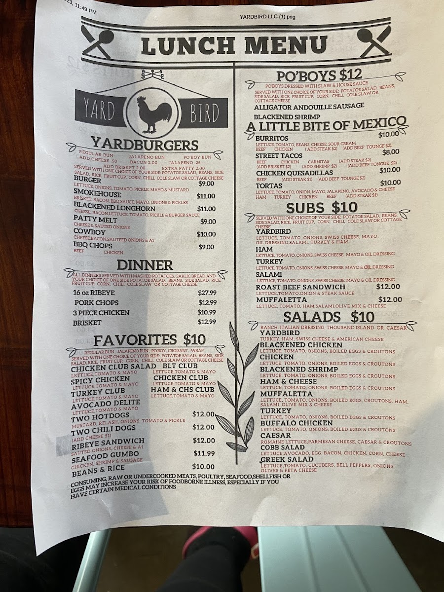 Whether you’re stopping for a quick bite or enjoying a leisurely meal, Yard Bird LLC promises a warm welcome and delicious food. Don’t miss the chance to indulge in this delightful stop!