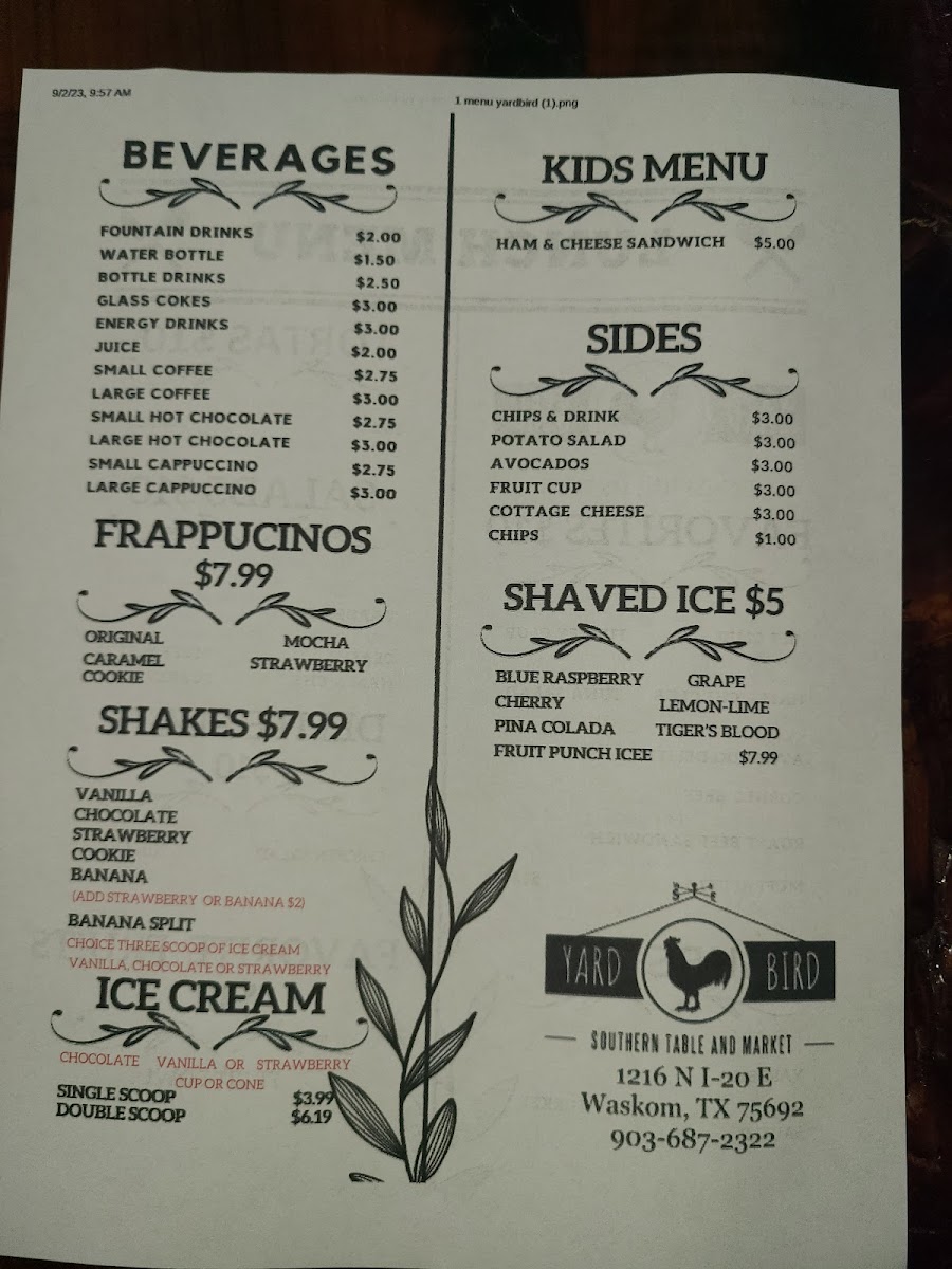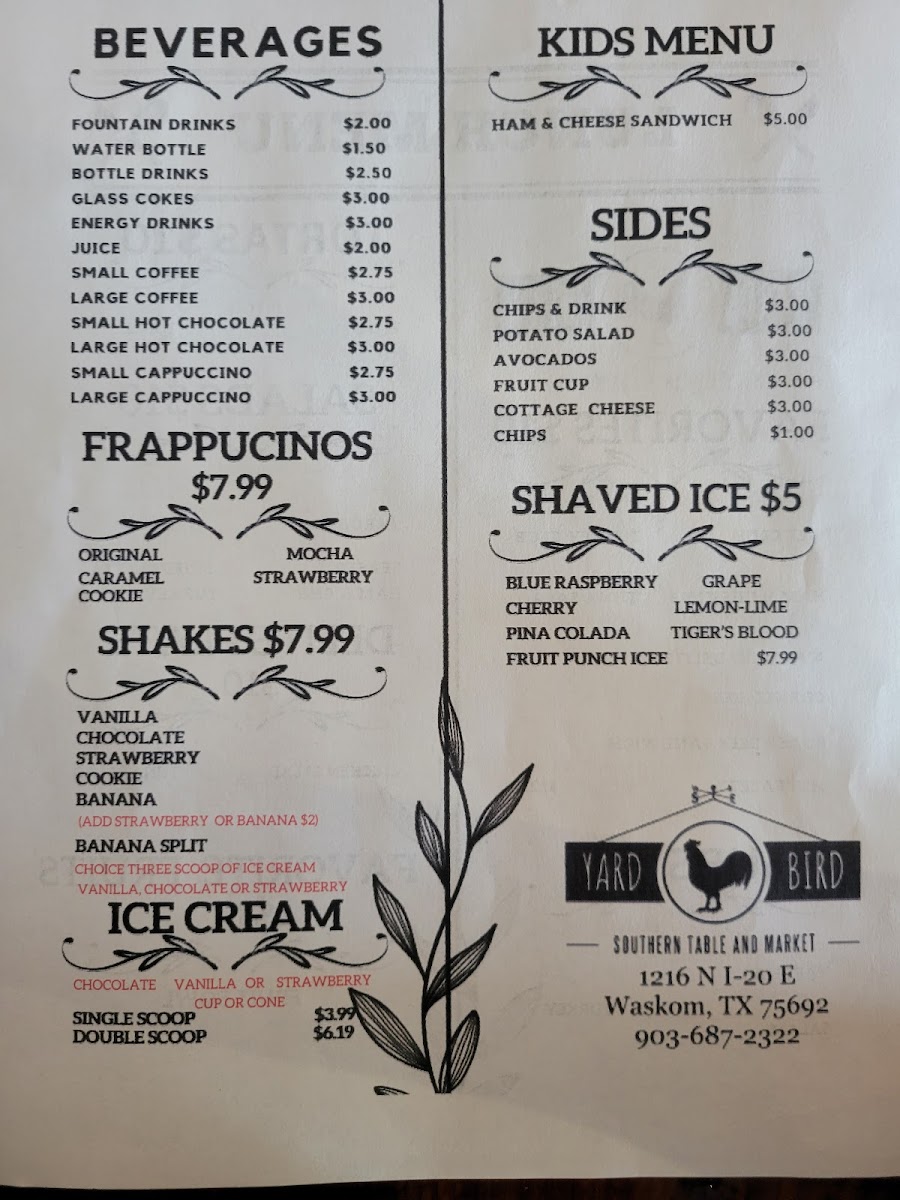 Welcome to Yard Bird LLC, a hidden gem located in Waskom, Texas. This delightful eatery is a must-visit for anyone traveling along I-20. Known for its cozy atmosphere and friendly service, Yard Bird boasts a menu filled with mouth-watering dishes that cater to diverse palates.
